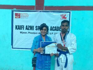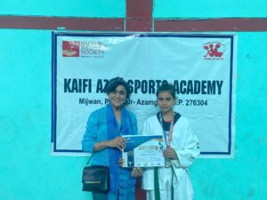 Certificates & Medals Galore: Neelima Ji presented certificates and medals to the participants of the open national championship tournament, recognizing their hard-earned achievements. She also awarded certificates to our Taekwondo students who passed their belt tests.